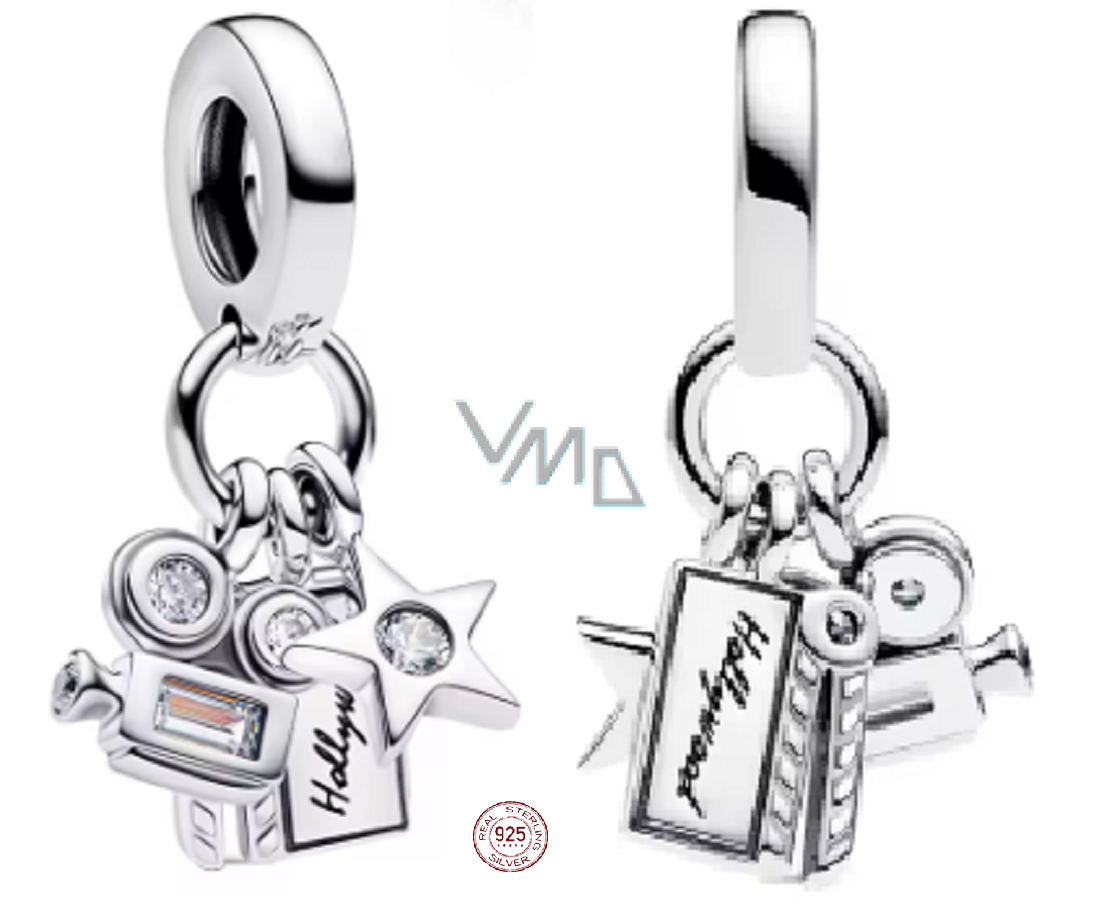 Charm Sterlingové stříbro 925 Hollywood Kamera a Hvězda, pro milovníky filmu, přívěsek na náramek film
