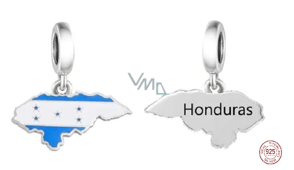 Charm Sterlingsilber 925 Honduras Flagge - schwingende Karte, Anhänger für Armband Reisen