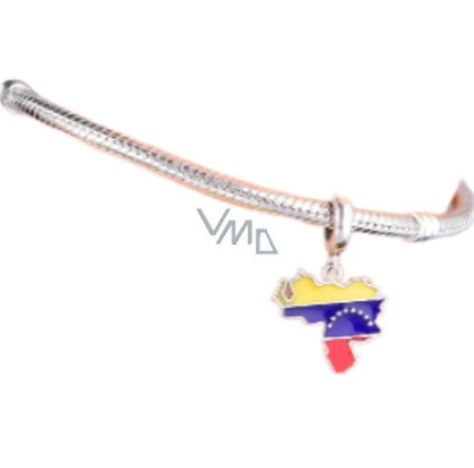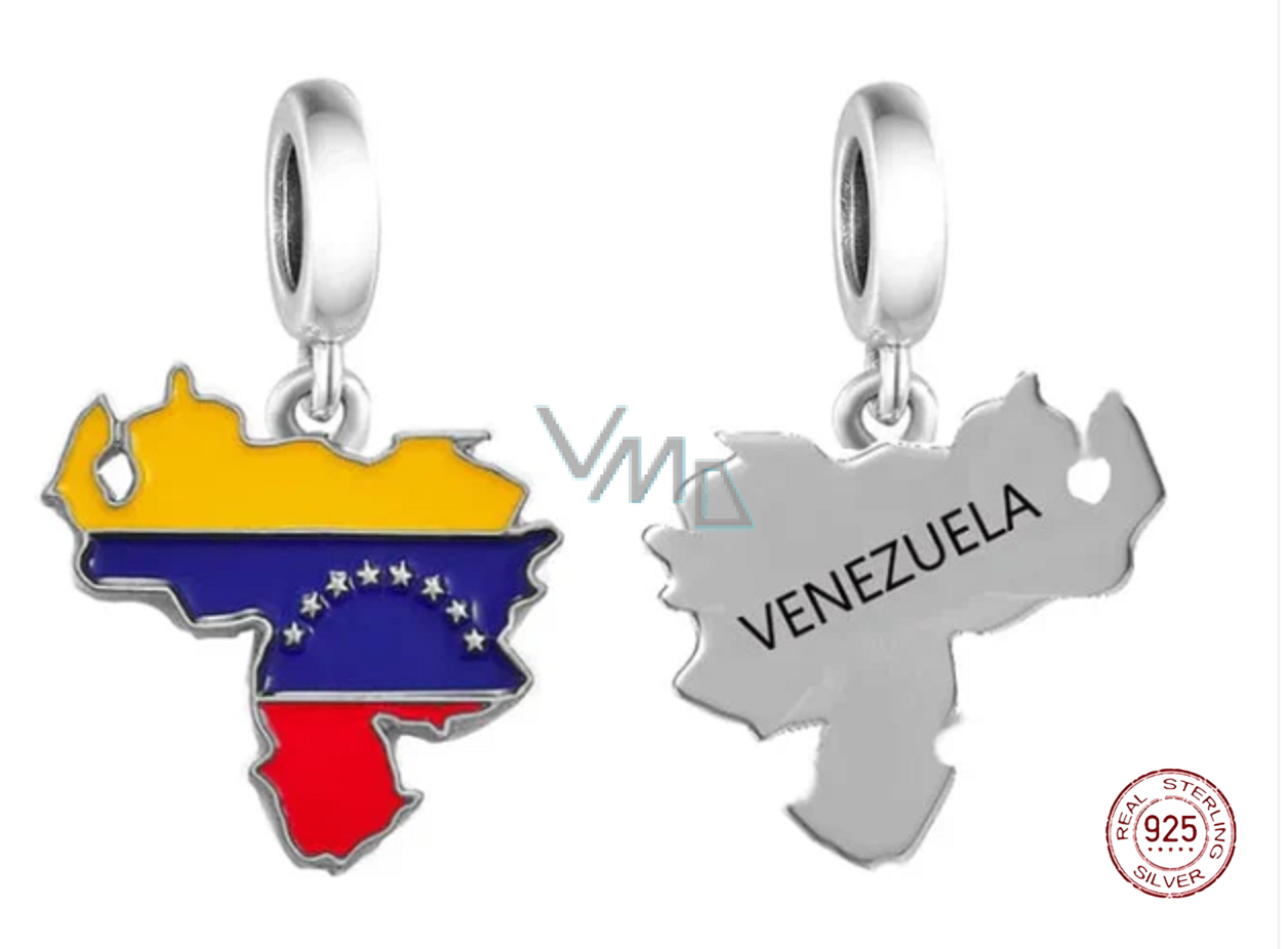 Charm Sterlingsilber 925 Venezuela Flagge - schwingende Karte, Anhänger für Armband Reisen