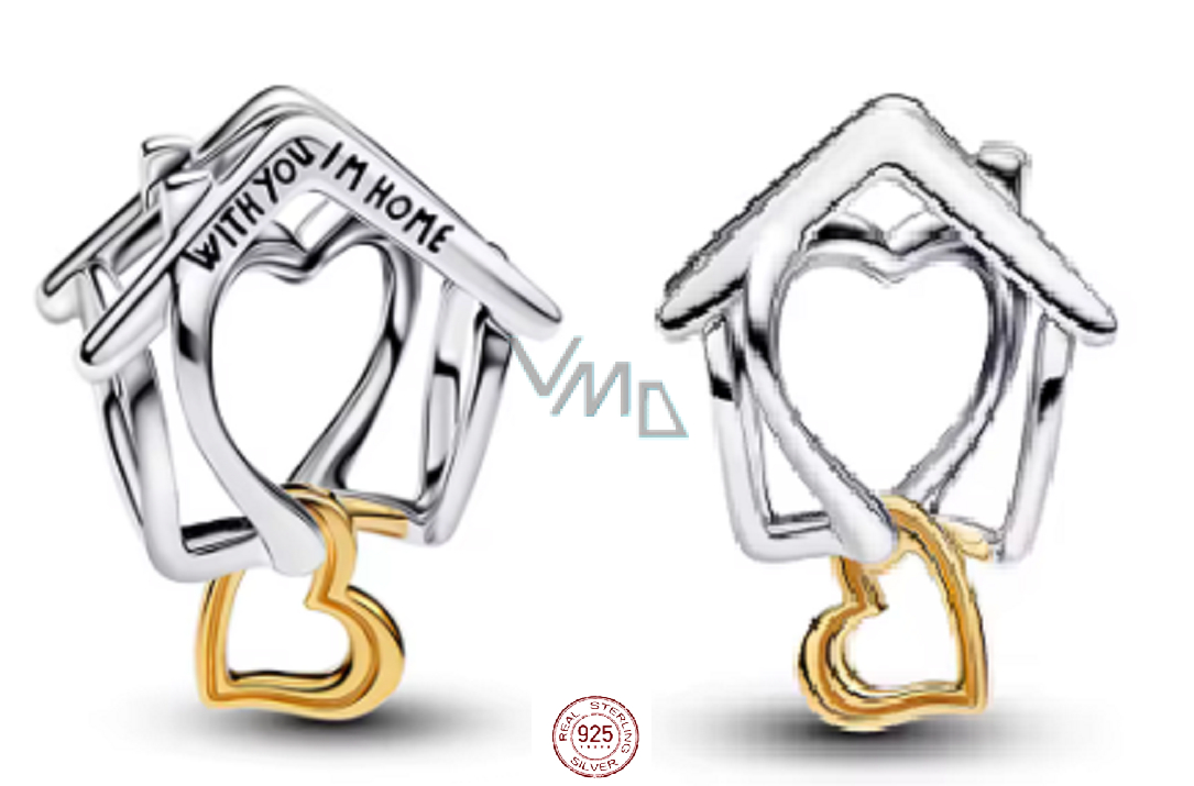 Charm Sterlingové stříbro 925 With You I’m Home – symbol lásky a domova, korálek na náramek rodina