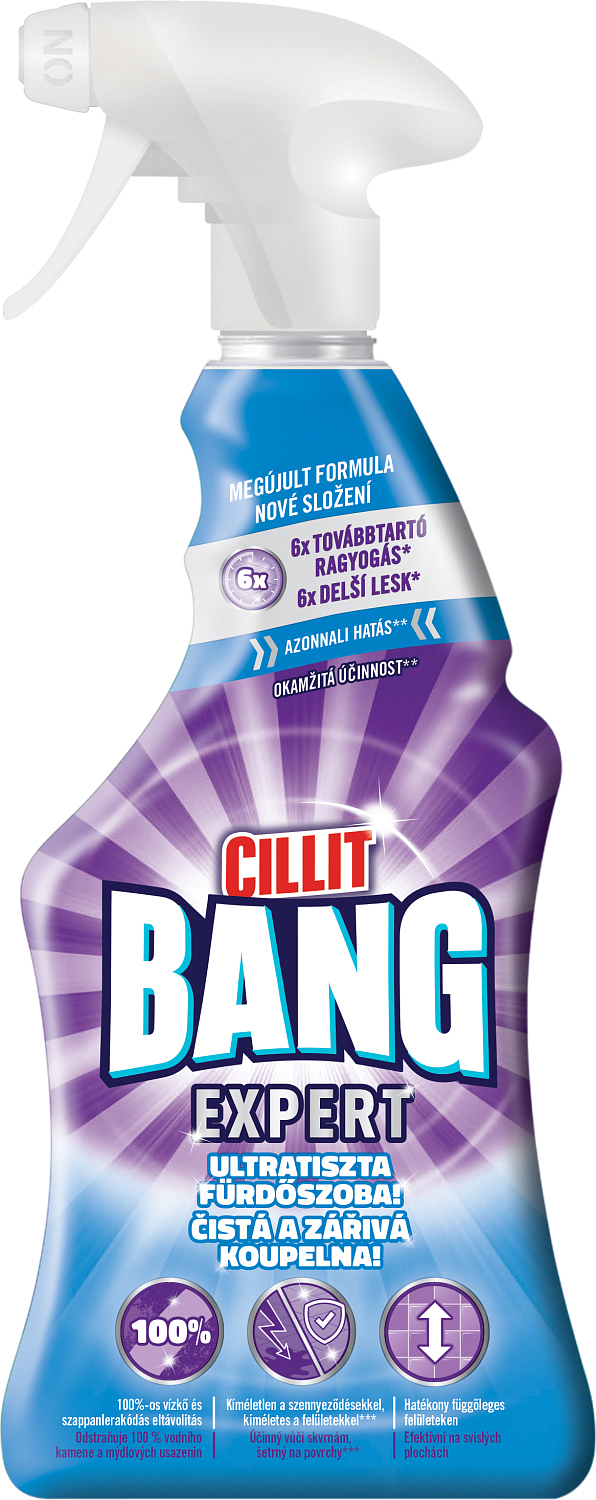 Cillit Bang und Schmutz sind lange weg! Cilit Bang Reiniger Spray für das Badezimmer ist ideal für die mühelose Entfernung aller Flecken im Badezimmer. Seine Zusammensetzung ist auf die effektive und schnelle Entfernung von Wasserstein, Seifenresten und Verschmutzungenausgerichtet. Und die neue Technologie verhindert die Bildung von Ablagerungen und somit die „Rückkehr“ von Verschmutzungen. Ihr Badezimmer bleibt lange sauber und strahlend!