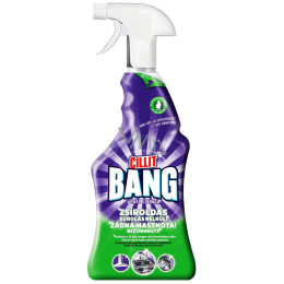 Cillit Bang ve spreji je vysoce účinný přípravek proti mastnotě, připáleninám a dodává vyšší lesk. Mimořádně účinná pëna rychle odstraňuje skvrny od jídla, připečené jídlo, nečistoty a dokonce i nejodolnější mastnotu většiny povrchů u vás doma i venku. Síla přípravku Cillit Bang působí např. na: příbory, talíře, sporáky, nádobí, hrnce, kastroly, kuchyňské pracovní pulty, ledničky, předměty z nerez oceli, kachličky, grily, skříně, přístroje, dveře, odsavače pachů a par, kovové žaluzie, popelnice, zahradní nábytek, jízdní kola, automobilové disky, povrchy z mramoru, granitu a z přírodního kamene, sklo a mnoho a mnoho dalšího (po použití opláchnout).