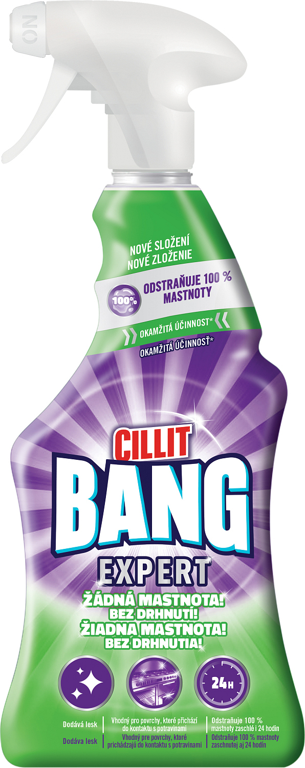 Cillit Bang zur Entfernung von Fett und für mehr Glanz wirkt bereits nach wenigen Sekunden. Das Mittel entfernt effektiv Essensreste, Fett und angebrannte Speisen. Bang! Und der Schmutz ist weg.