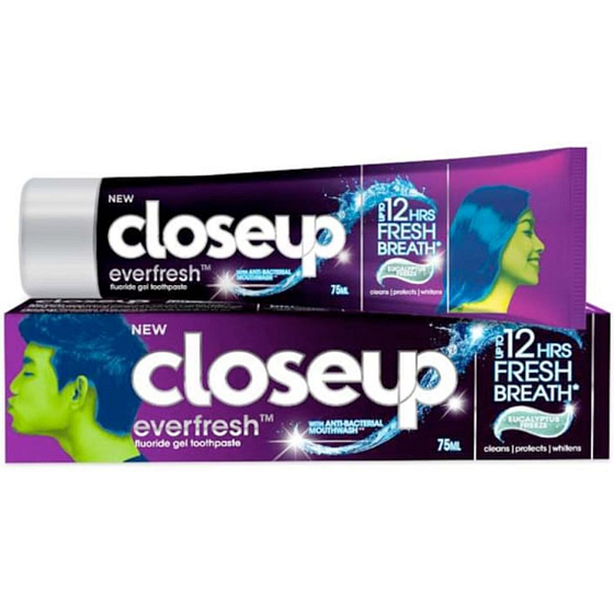 Verwöhnen Sie Ihren Mund mit intensiver Eukalyptusfrische mit der Closeup Everfresh Eucalyptus Freeze Zahnpasta 90 g. Diese Gelzahnpasta kombiniert Fluorid zum Schutz vor Karies mit einer antibakteriellen Formel, die bis zu 12 Stunden frischen Atem garantiert. Dank der Mikrokrystalle hilft sie, Flecken zu entfernen und lässt die Zähne sichtbar weißer erscheinen. Closeup Everfresh Eucalyptus Freeze ist ideal für die tägliche Anwendung, bietet gründliche Reinigung und ein langanhaltendes Frischegefühl.