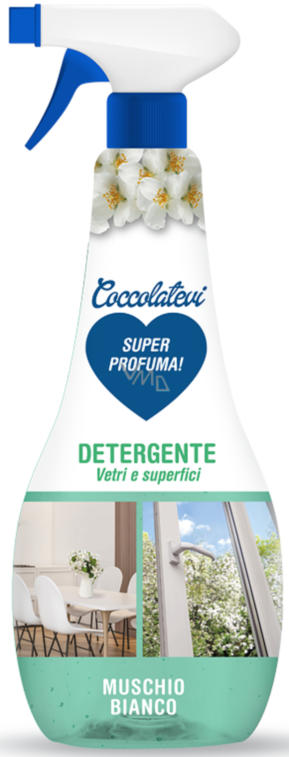 Coccolatevi je kvalitní čisticí prostředek s inovativním složením s velmi nízkým dopadem na životní prostředí. Je vhodný na veškeré skleněné povrchy, včetně zrcadel a tvrdé povrchy. Rychle schne bez zanechání šmouh.