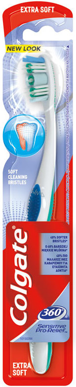 Zubní kartáček Colgate 360° ultra měkký. Colgate 360° odstraní 96% více bakterií dutiny ústní, než běžný zubní kartáček. Ústní hygiena je víc než jen čištění zubů – 80% bakterií způsobující zubní kaz se nachází i na jiných místech dutiny ústní, včetně jazyka. Tyto bakterie, jestliže je nekontrolujeme mohou poškodit zdraví dutiny ústní, napomáhají například rozvoji zánětu dásní a nepříjemnému dechu. Součástí zubního kartáčku Colgate 360° je i jemně strukturovaná čistící ploška pro čištění jazyka a měkkých tkání, ta pomáhá udržovat čistou celou dutinu ústní. Zubní kartáček Colgate 360° je vybaven měkkými gumovými leštícími pohárky a kuželovitě uspořádanými svazky štětin, které dokonale vyčistí povrch vašich zubů a mezizubní prostory. Čistící ploška účinně odstraní bakterie z jazyka.