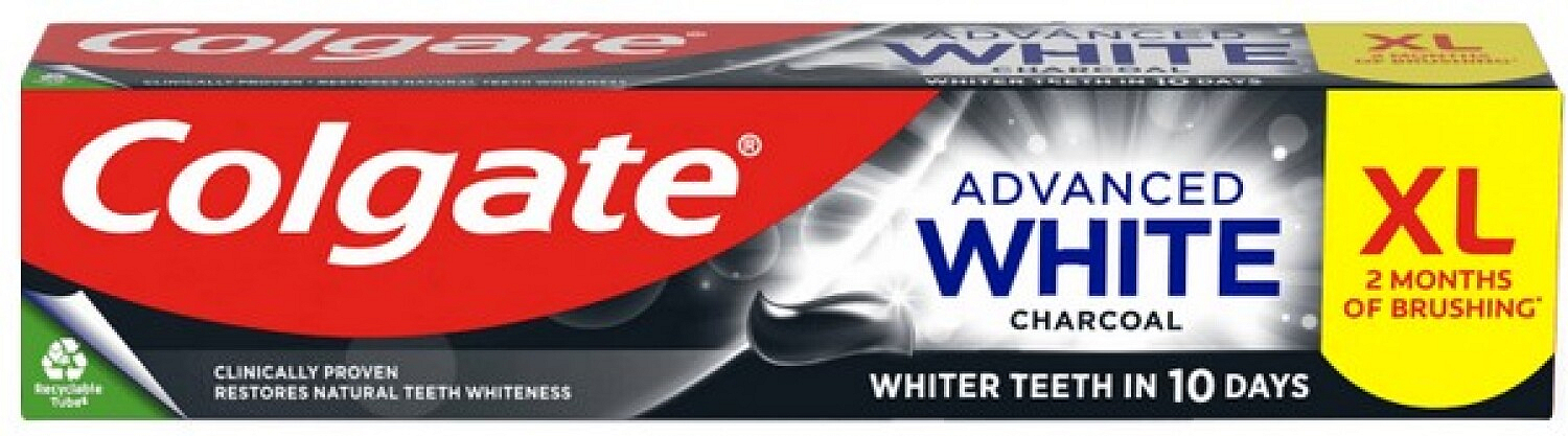 Colgate Advanced White Charcoal Zahnpasta ist für die tägliche Zahnpflege geeignet. Sie hilft, die Zähne sauber zu halten und trägt zu einem weißeren Erscheinungsbild bei.