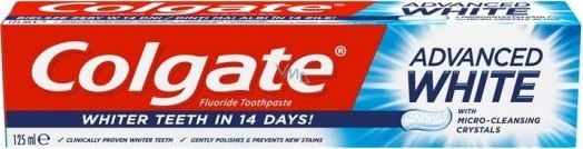 Účinky Colgate® Advanced White s aktivními mikro-čistícími krystalky jsou klinicky ověřené - jemně leští a efektivně bělí Vaše zuby. Také pomáhá s prevencí usazování nových skvrn a tak zuby zůstávají déle bílé.
