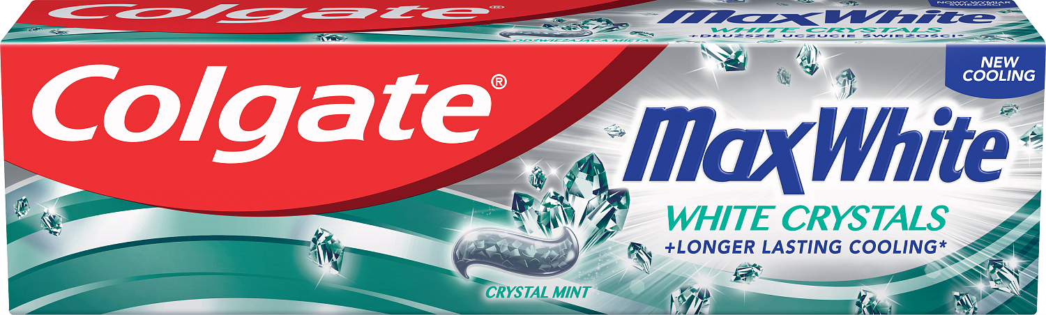 Die Zahnpasta Colgate Max White enthält kühlende Kristalle für eine neue Dimension der Weißheit! Diese Zahnpasta enthält Frische wie Mundwasser.