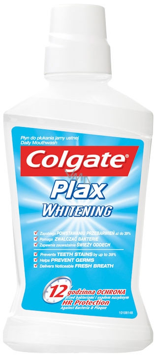 Colgate Plax Whitening účinně bojuje proti bakteriím a tvorbě zubního plaku po dobu 12-ti hodin. Díky fluoridu chrání před zubním kazem a posiluje zuby. Chrání před onemocněním dásní a čistí i těžko dostupná místa. Skvělá chuť poskytuje dlouhotrvající svěží dech.