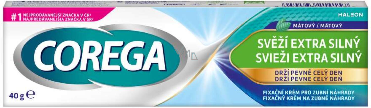 Corega Fresh Extra Strong Haftcreme sorgt für eine sichere und stabile Befestigung des Zahnersatzes in alle Richtungen – vorne, hinten, oben und unten. Dank der speziellen Zusammensetzung bietet es eine langanhaltende Fixierung den ganzen Tag und gleichzeitig ein frisches Gefühl durch den Minzgeschmack.