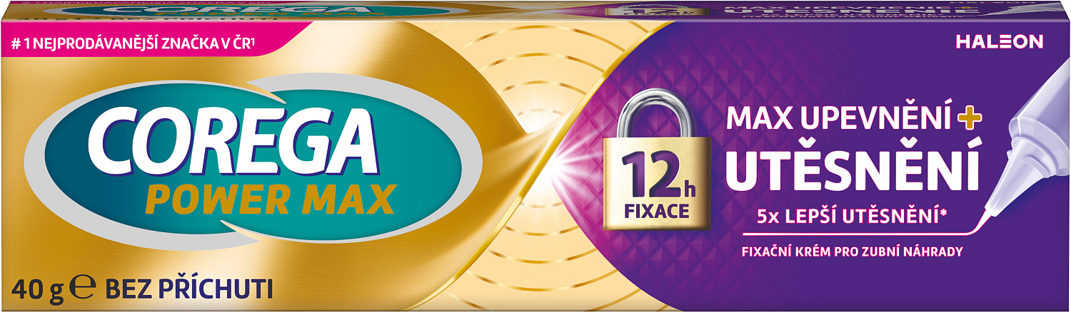 Corega Power Max ist eine Haftcreme für teilweise und vollständig herausnehmbare Zahnprothesen, die maximalen Halt und Komfort den ganzen Tag über gewährleistet. Dank einer speziellen Technologie hilft sie, die Prothese fest zu fixieren und gleichzeitig eine Dichtungsschicht zu bilden, die das Eindringen von Speiseresten unter die Prothese verhindert. Sie ist geschmacklos, zinkfrei und frei von Farbstoffen, sodass sie auch für empfindliche Anwender geeignet ist.