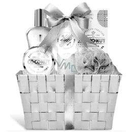 Cosmetica Fanatica Coconut Körperlotion 95 ml + Duschgel 190 ml + Körperpeeling 50 ml + Badesalz 50 g + Badematte + Korb, Kosmetikset