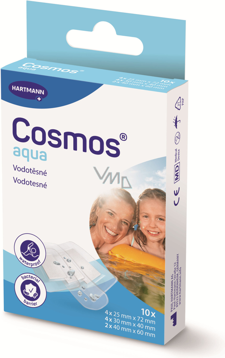 COSMOS AQUA wasserfeste Pflaster 10 Stück sind wasserdichte, transparente, teilbare Pflaster für eine diskrete und optimale Behandlung von kleinen Verletzungen. Sie sind geeignet für kleinere Verletzungen beim Baden. Sie sind atmungsaktiv, kleben nicht an der Wunde und sind sanft zur Haut dank hypoallergenem Kleber.