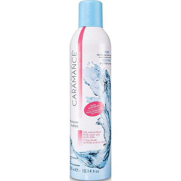 Caramance přírodní osvěžující voda ve spreji je ideální pro mytí obličeje, hydratování a ochlazování suché nebo podrážděné pleti, přináší úlevu po kousnutí hmyzem. pH 5,6 umožňuje i kosmetické využití při čištění obličeje, má antiseptické účinky.