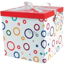 Dárková krabička skládací s mašlí 01 S kruhy XXL 30 x 30 x 17 cm