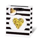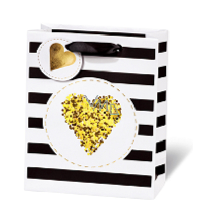 BSB Luxusní dárková papírová taška 23 x 19 x 9 cm Golden Glitter Srdce LDT 409 - A5