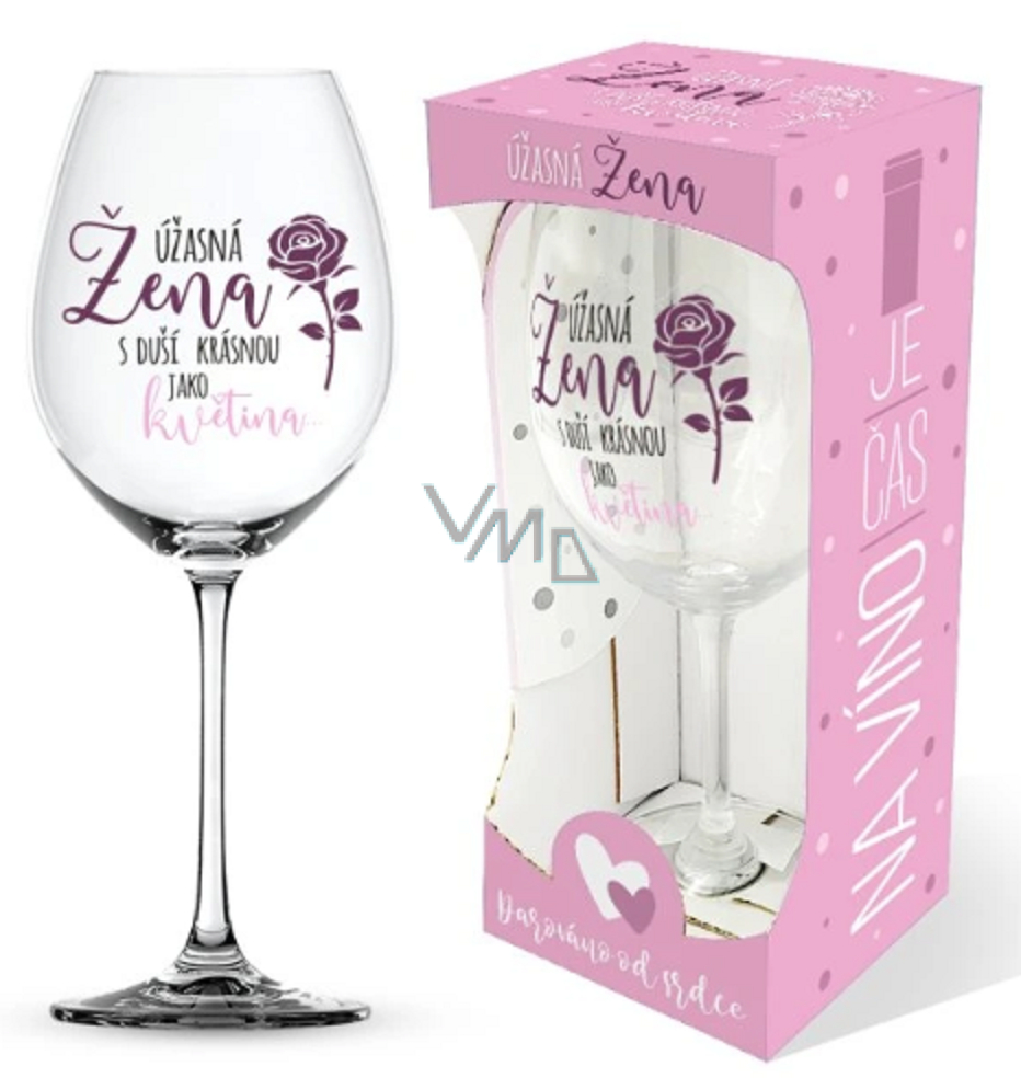 Udělejte radost úžasné ženě sklenicí na víno s věnováním. Žena s duší krásnou jako květina. Znáte i vy takovou? Pak ji potěšte třeba drobným dárkem v podobě sklenice na víno s věnováním. Vždy jí připomene, jak moc pro vás znamená.