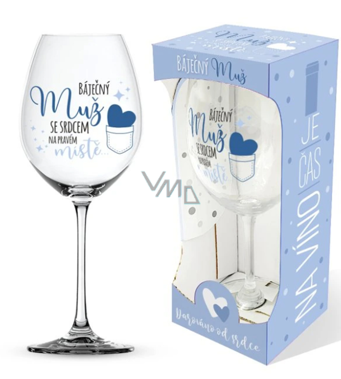 Sklenice na víno je designově sladěna i s ostatními dárky z kolekce „Báječný muž se srdcem na pravém místě“. Můžete tak vytvořit sadu dárků, které jistě ocení. Jsou totiž praktické a milé současně.