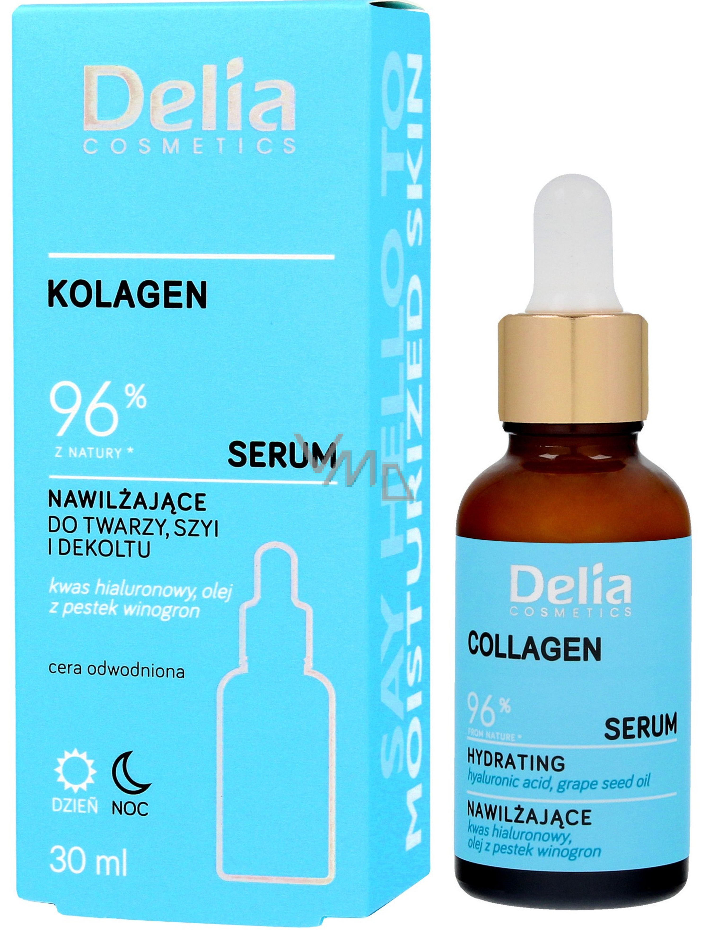Pleťové sérum Delia Cosmetics Collagen představuje přípravek s vysokým obsahem účinných látek. Díky tomu poskytuje vaší pleti tu nejluxusnější péči. Hydratační sérum na obličej, krk a dekolt s kolagenem, kyselinou hyaluronovou a olejem z hroznových jader. Intenzivně hydratuje pokožku, zlepšuje její elasticitu a snižuje viditelnost vrásek.