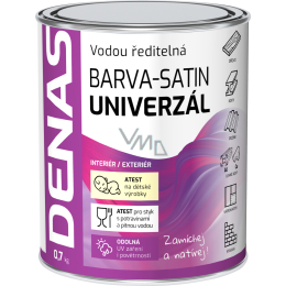DENAS UNIVERZÁL SATIN je polomatná vrchní vodou ředitelná barva na nátěry stavební prvků a konstrukcí ze dřeva, kovu, staviv, čerstvého pozinkovaného plechu i pozinkovaných střešních šablon, hliníku, některých druhů plastů, umakartu, keramických obkladů s přídavkem silanu, sádrokartonu. Splňuje normu povrchových úprav výrobků a hraček pro děti od 0-3 let (ČSN EN 71, část 3) a je vhodný pro styk s potravinami. Nátěry mají vynikající odolnost, nekřídují, ani nekřehnou vlivem působení UV záření a povětrnosti, jsou odolné působení čisticích přípravků užívaným v domácnosti. Natřené povrchy jsou extrémně mechanicky odolné a vykazují dlouhou životnost v interiéru i exteriéru.