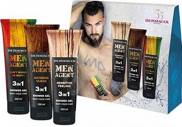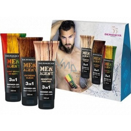 Dermacol Men Agent 3 in 1 Sensitive Feeling Duschgel 250 ml + 3 in 1 Extreme Clean Duschgel 250 ml + 3 in 1 Dont Sorge be happy Duschgel, Kosmetikset für Männer