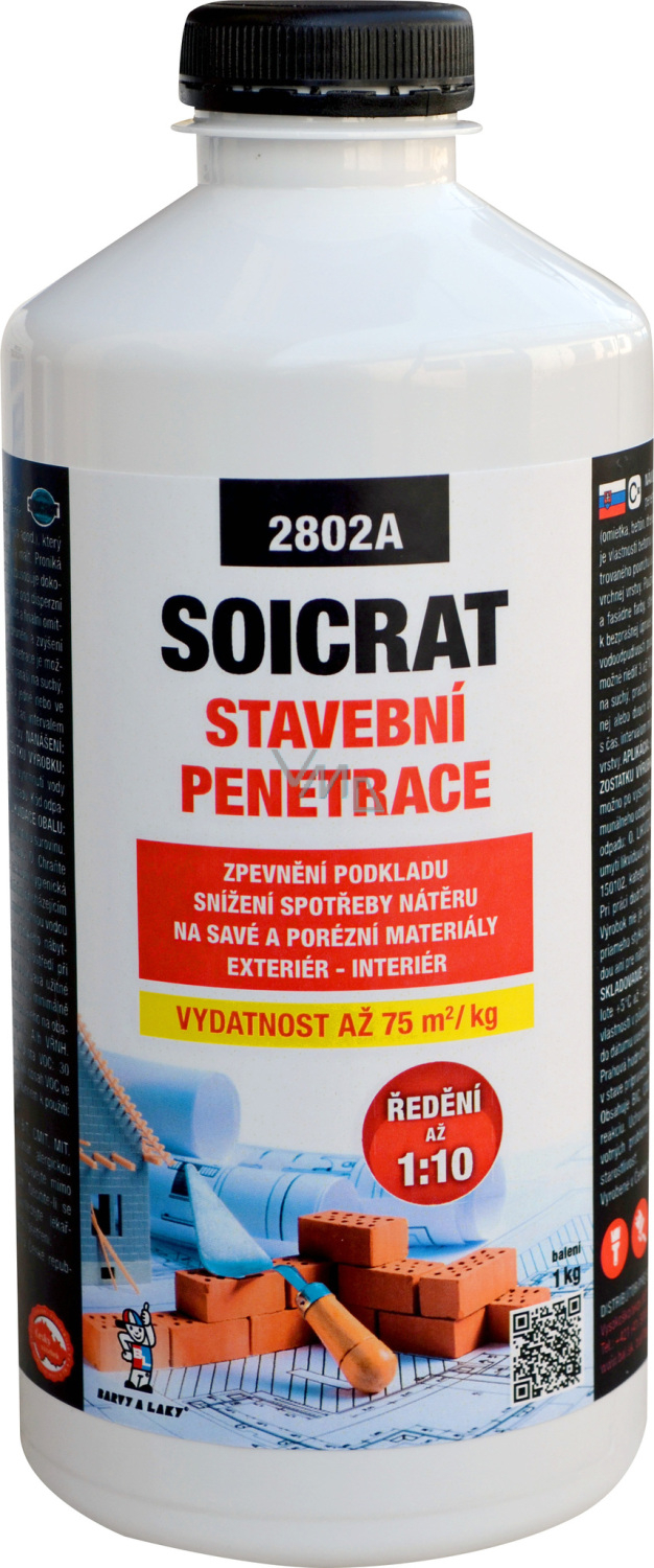 Universelle Grundierung für saugfähige Untergründe (Putze, Beton, Holz usw.) zur Reduzierung der Saugfähigkeit und Verbesserung des Haftvermögens der oberen Schicht mit Dispersionsfarbe (Latex, Bakrylex Email, Barlet Acrylat, Bakrylex Lack). Sie verbessert auch die Eigenschaften von Mörtel und Beton. Soicrat Baulack wird auf eine trockene, von Staub und Schmutz befreite Oberfläche in einer oder zwei Schichten (je nach Saugfähigkeit des Untergrunds) aufgetragen. Der obere Anstrich kann nach dem Trocknen der Grundierung aufgetragen werden. Je nach Saugfähigkeit und Zustand des zu verstärkenden Untergrunds kann im Verhältnis 1 Teil Grundierung und 3 bis 10 Teile Wasser verdünnt werden.