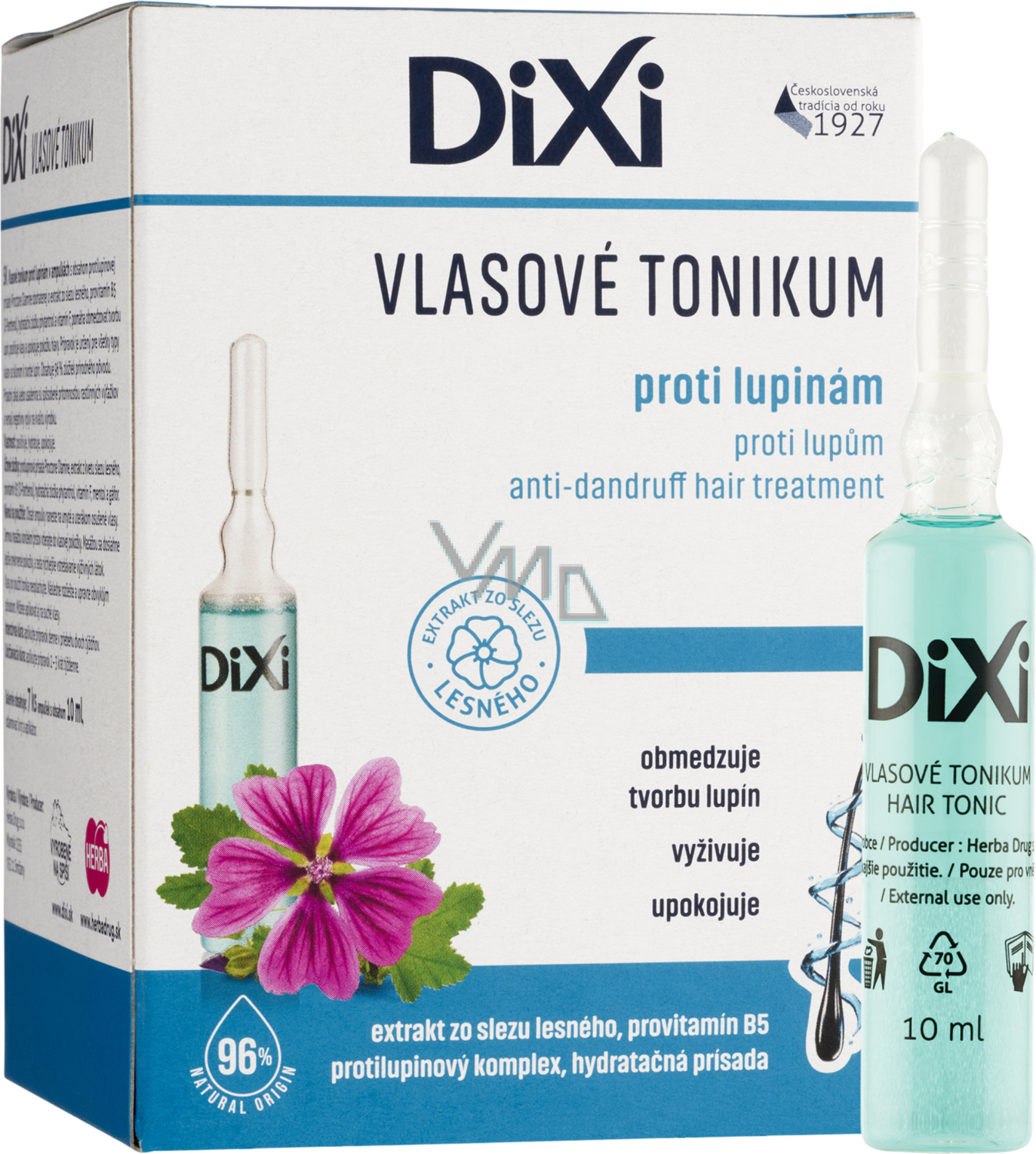 Haartonikum gegen Schuppen in Ampullen mit dem Inhaltsstoff gegen Schuppen Piroctone Olamine, angereichert mit einem Extrakt aus Malve, Provitamin B5 (D-Panthenol), dem feuchtigkeitsspendenden Inhaltsstoff Phytantriol und Vitamin F, hilft die Bildung von Schuppen zu reduzieren, stärkt das Haar und beruhigt die Kopfhaut. Das Produkt ist bestimmt für alle Haartypen mit einer Neigung zur Schuppenbildung. Es enthält 96 % Inhaltsstoffe natürlichen Ursprungs.