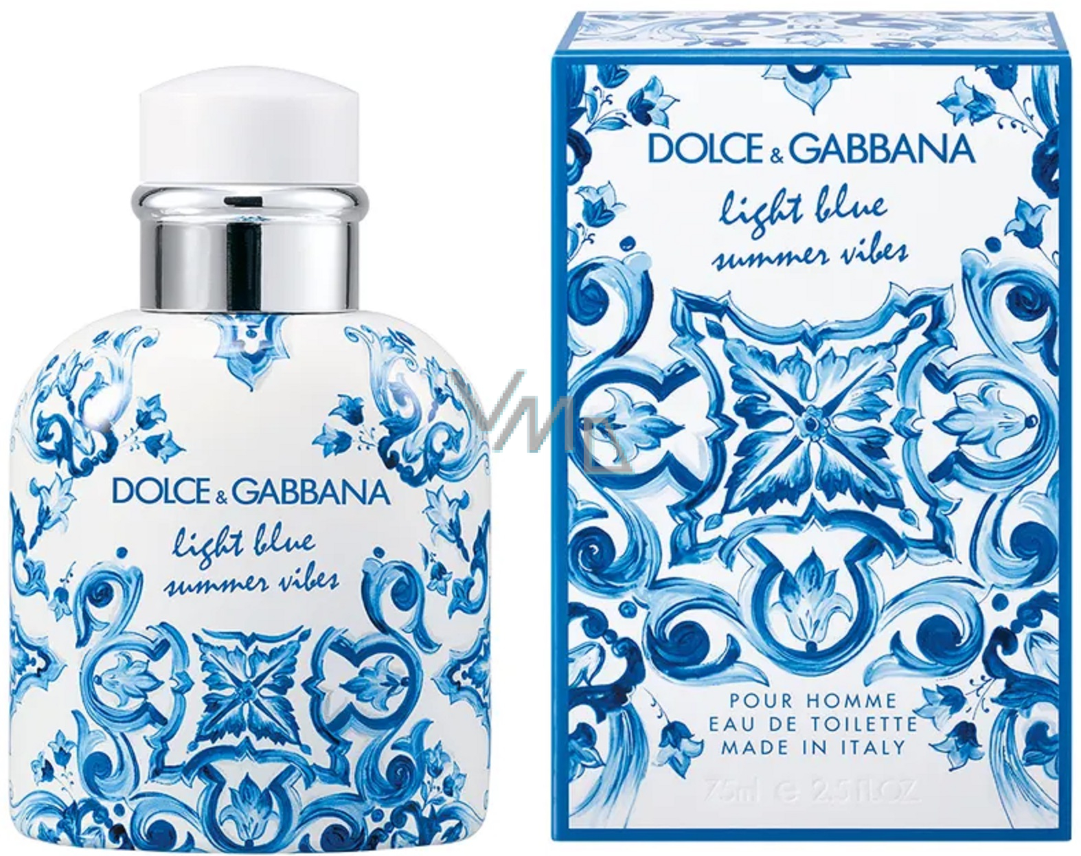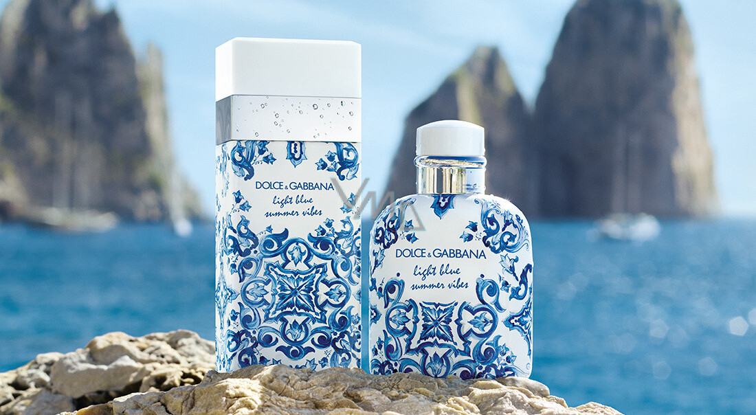 Toaletní voda Light Blue Summer Vibes Pour Homme odráží radost z léta ve flakonu lichoběžníkového tvaru s jemnými liniemi, obklopeném ikonickým potiskem majoliky a ozdobeném bílým uzávěrem. Vůni vytvořil Alberto Morillas exkluzivně pro Dolce & Gabbana.