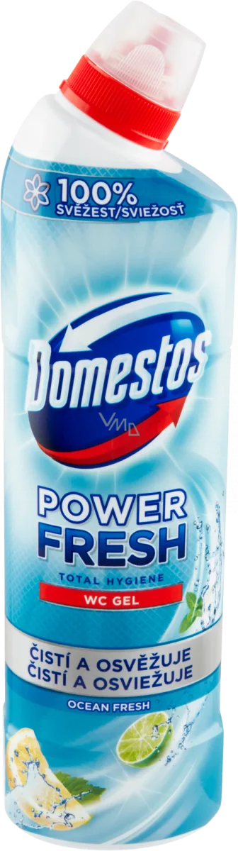 Domestos WC gel Power Fresh je určen k účinnému odstraňování vodního kamene v toaletě. Přilne k povrchu toaletní mísy, kde působí dlouhou dobu, a to dokonce i pod vodní hladinou! WC gel Power Fresh odstraňuje 99,9 % známých bakterií.