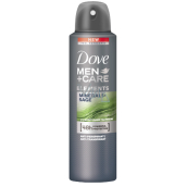 Dove Elements Minerals & Sage antiperspirant ve spreji vás chrání 48 hodin proti potu a zápachu a chrání vaši pokožku. Obsahuje přírodní minerály a šalvěj. Okamžitě zasychá a nedráždí pokožku.