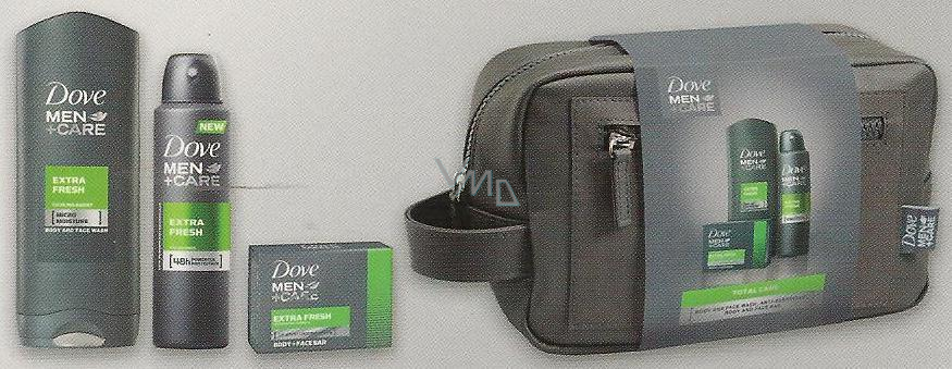 Dove Men + Care FM Extra Frisches Duschgel 250 ml + Deodorant Spray für Männer 150 ml + Cremetablette 90 g + Toilettentasche, Kosmetikset
