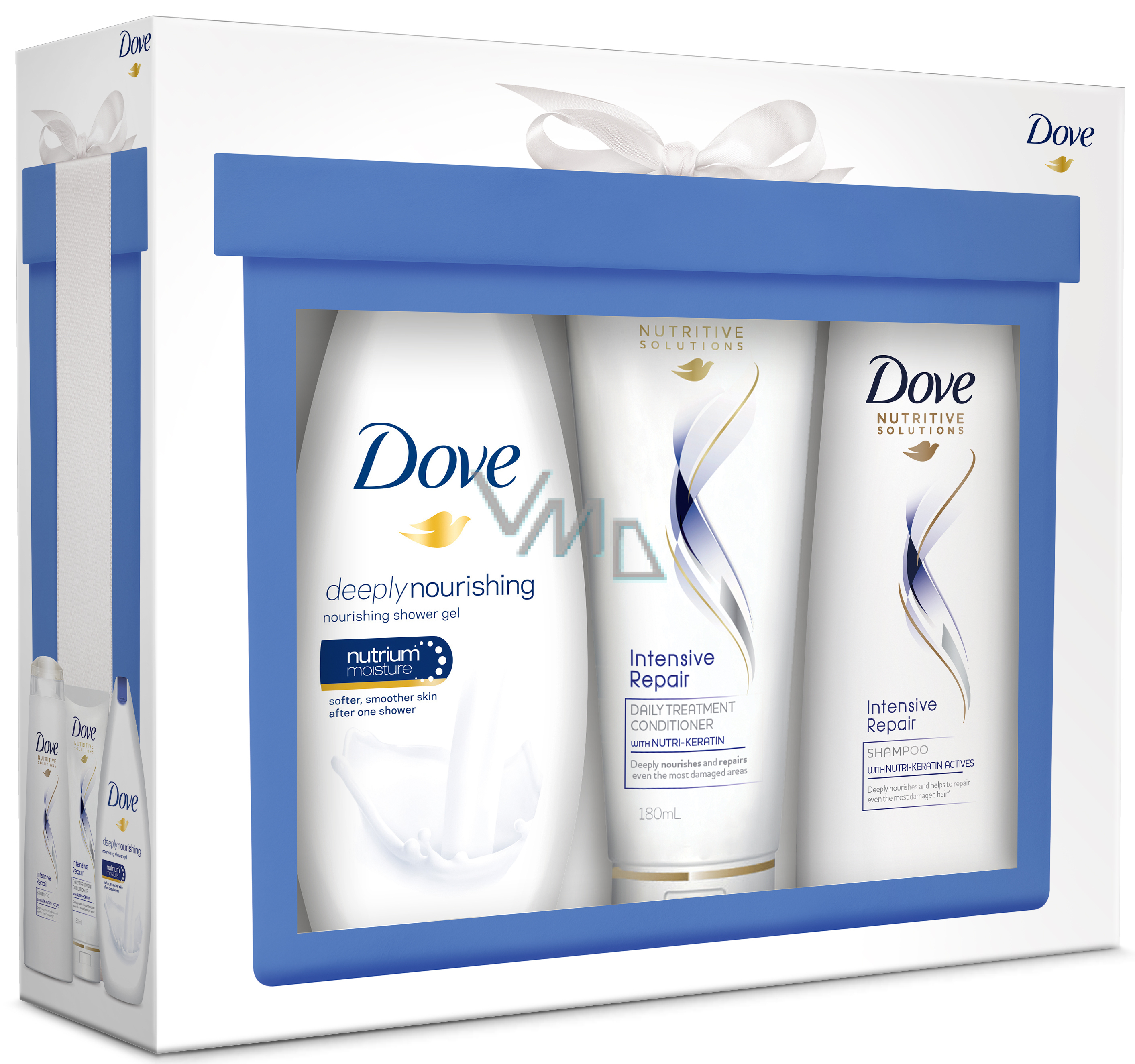 Dove Nourishing Deeply Duschgel 250 ml + Intensive Repair Shampoo 250 ml + Conditioner 180 ml, Kosmetikset