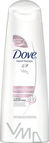 Dove Repair Therapy Glanz & Pflege šampon pro zářivě lesklé vlasy. Zanechává vlasy přirozeně krásné, sametově jemné a lesklé. Obsahuje Micro Moisture sérum, které vyživuje povrch vlasů, zanechává je zářivě lesklé, uhlazené a odolné proti dalšímu poškození.