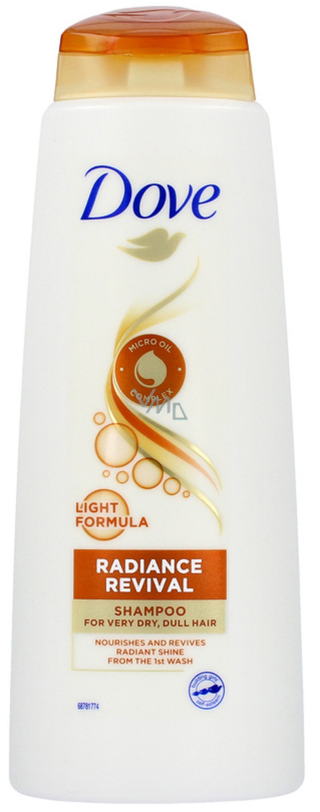 Šampon Dove Radiance Revival je ideální pro velmi vysušené a křehké vlasy. Složení obohacené o komplex mikro olejů má revitalizační účinky. Malé molekuly oleje mají extra výživnou sílu, díky které se dostanou do nejsušších částí Vašeho vlasu, pronikají hluboko do vlasových vláken a pomáhají doplnit živiny tam, kde jsou nejvíce potřeba. Jemné a lehké složení vlasy nezatěžuje a šetrně čistí. Výsledkem jsou lesklé, hebké a jemné vlasy plné vitality a síly.