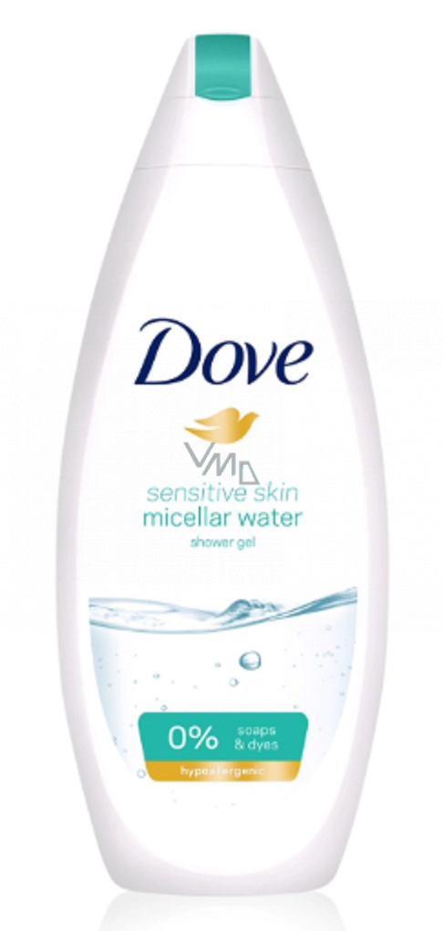 Dove micelární sprchový gel Sensitive obsahuje velmi jemné micely, které umožňují jemné a šetrné mytí pokožky.