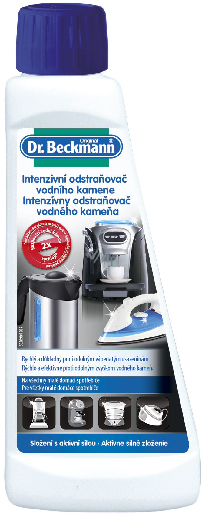 Intenzivní odstraňovač vodního kamene Dr. Beckmann při pravidelném používání spolehlivě chrání naše spotřebiče před poškozením způsobené vodním kamenem (např. varné konvice, kávovary atd.).
