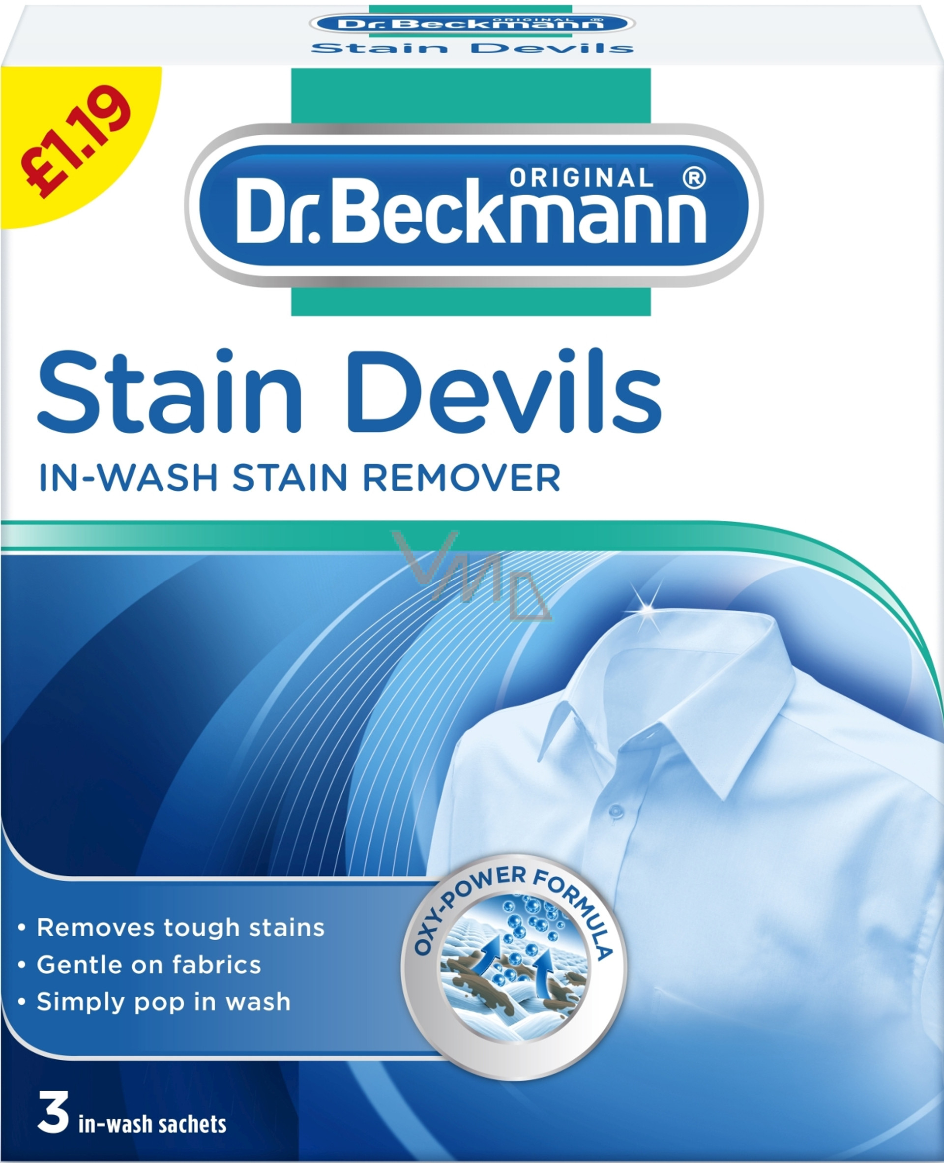 Dr. Beckham Stain Devils in Wash je vhodný na odolné skvrny. Pokud potřebujete odolný odstraňovač skvrn, tak sáhněte na jistotu. Vhodný pro omyvatelné, stálobarevné prádlo. Nepoužívejte na vlnu a hedvábí.