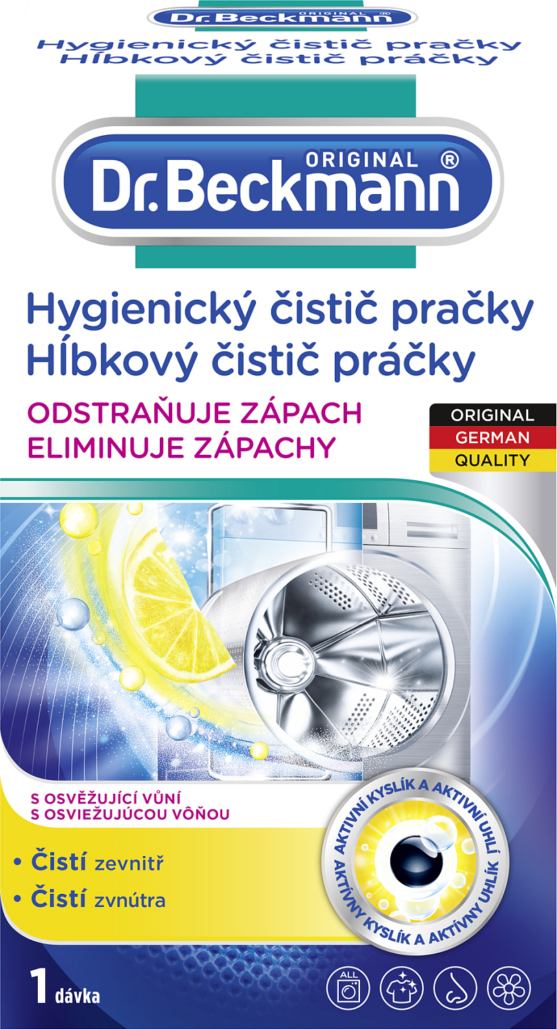 Dr. Beckmann Waschmaschinenreiniger entfernt Gerüche, reinigt hygienisch das Innere der Waschmaschine wie: Trommel, Heizspirale, Schläuche und andere schwer zugängliche Komponenten. Das Pulverreinigungsmittel reinigt gründlich und entfernt Gerüche.