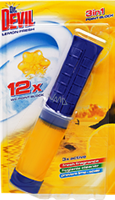 WC bodový blok s přídavkem látky neutralizující nepříjemné pachy. Voní, čistí a preventivně působí proti usazování vodního kamene.