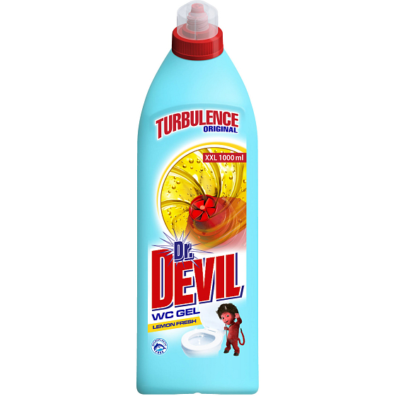 Dr. DEVIL WC Gel Turbulence Lemon Fresh ist ein effektives Reinigungsmittel für eine gründliche Hygiene von Toiletten. Es bietet einen frischen Zitronenduft, der unangenehme Gerüche neutralisiert.