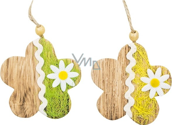 Dřevěné květiny ve žluté a zelené barvě o velikosti 7,5 cm oživí váš dům na jaře nebo také o Velikonocích. Můžete si je zavěsit například v obývacím pokoji, nebo jimi dozdobit nějakou dekoraci.