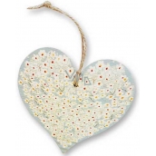 Böhmen Geschenke Dekoratives Herz aus Holz mit Aufdruck Weiße Blüten 13,5 cm