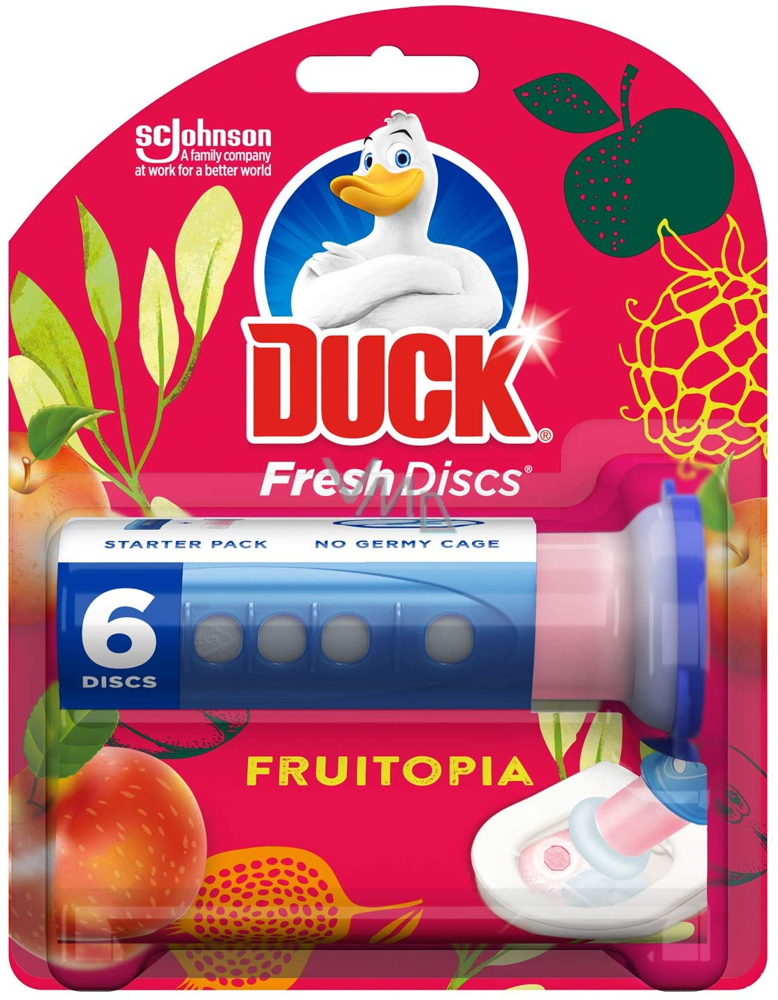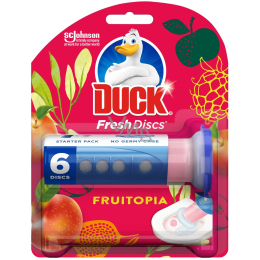 Duck Fresh Discs dokonale vyčistí vaši toaletu a spolehlivě ji ochrání před vodním kamenem při každém spláchnutí. Stačí pouze aplikovat na vnitřní stěnu mísy a gelový disk bude pracovat za vás. Navíc toaletu provoní příjemnou ovocnou vůní.