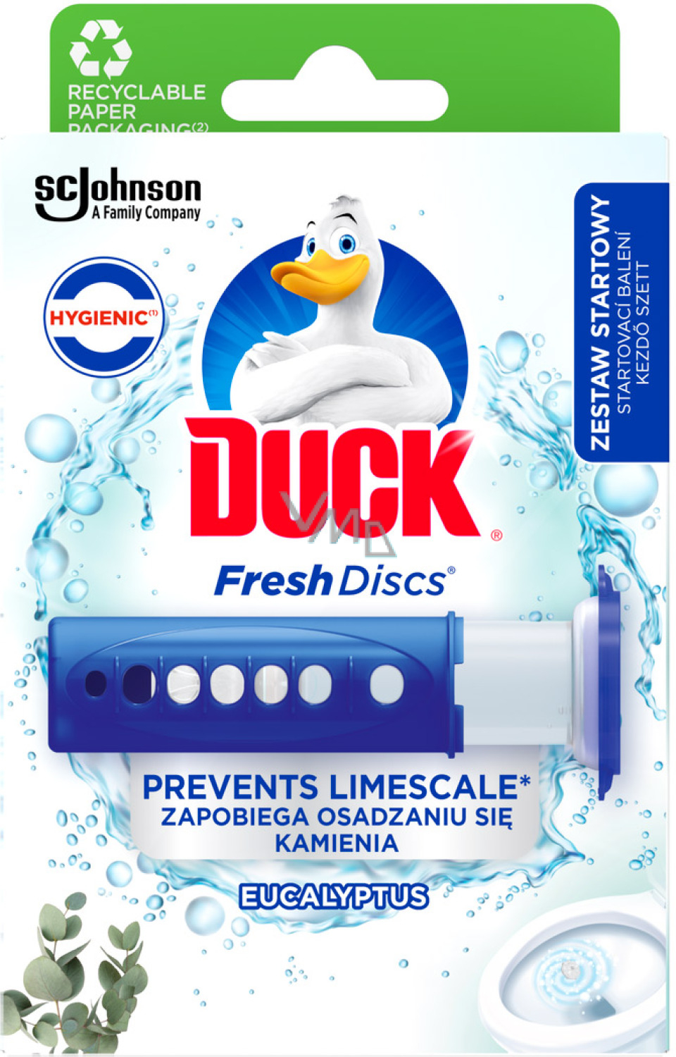 WC-Gel Duck Fresh Discs Active Eucalyptus reinigt Ihre Toilette perfekt und schützt sie sehr zuverlässig vor Kalkablagerungen. Sie müssen ihn einfach nur an die Innenwand der Keramik auftragen, und der Gel-Disk Duck übernimmt die Arbeit für Sie. Der WC-Gel Duck Fresh verströmt einen eukalyptischen Duft im gesamten Raum. Die Nachfüllung Duck Fresh hält ca. 6 Wochen oder bis zu 600 Spülungen.