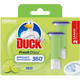WC gel Duck Fresh Discs limetka dokonale vyčistí Vaší toaletu a velmi spolehlivě ji ochrání před vodním kamenem. Stačí jednoduše aplikovat na vnitřní stěnu mísy a gelový disk Duck se chopí práce za vás. WC gel Duck Fresh provoní celou místnost limetkovou vůní. Náplň Duck Fresh vydrží cca 6 týdnů nebo až 600 spláchnutí.