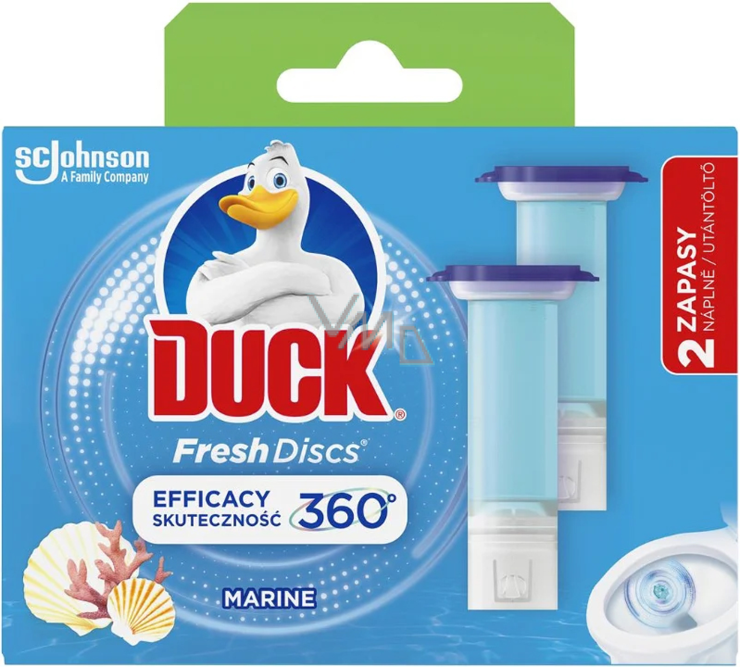 Duck FreshDiscs náhradní náplň do gelové disku, který přilne k WC míse. Zabraňuje usazování vodního kamene, dlouhodobě osvěžuje, hygienická aplikace, čistí s každým spláchnutím, vydrží až 8 týdnů.