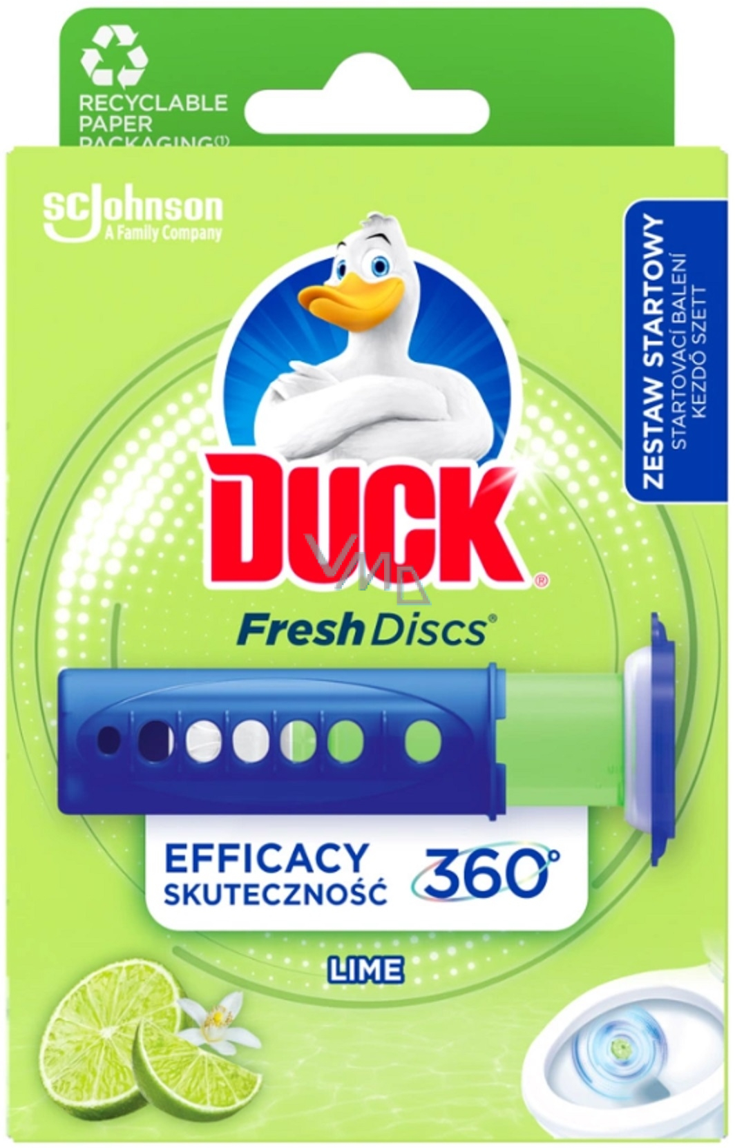 WC gel Duck Fresh Discs Limetka 36 ml dokonale vyčistí vaši toaletu a spolehlivě ji ochrání před vodním kamenem při každém spláchnutí. Stačí pouze aplikovat na vnitřní stěnu mísy a gelový disk bude pracovat za vás. WC gel Duck Fresh 36 ml provoní celou místnost příjemnou vůní Limetky. Náplň vydrží cca 6 týdnů nebo 600 spláchnutí. V balení najdete gelovou náplň a hygienický aplikátor.