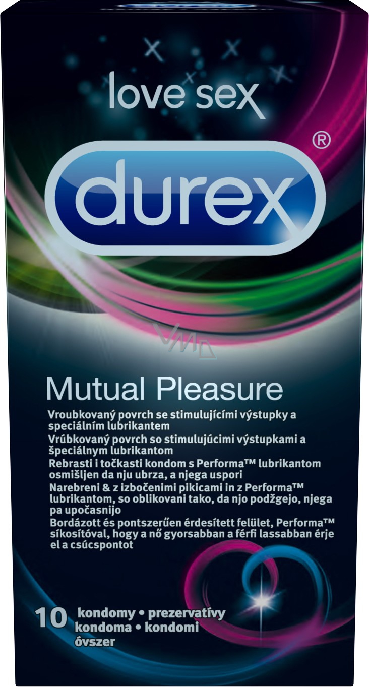 Určen pro společné vyvrcholení Lubrikant Performa obsahuje 5% benzokainu, který pomáhá mužům odkládat vyvrcholení. Vroubkovaný povrch se stimulujícími výstupky pro zintenzivnění orgasmu ženy. Easy-on tvar, zakončený rezervoárem, pro pohodlí a dokonalou přilnavost. Průhledné kondomy z přírodního kaučukového latexu.