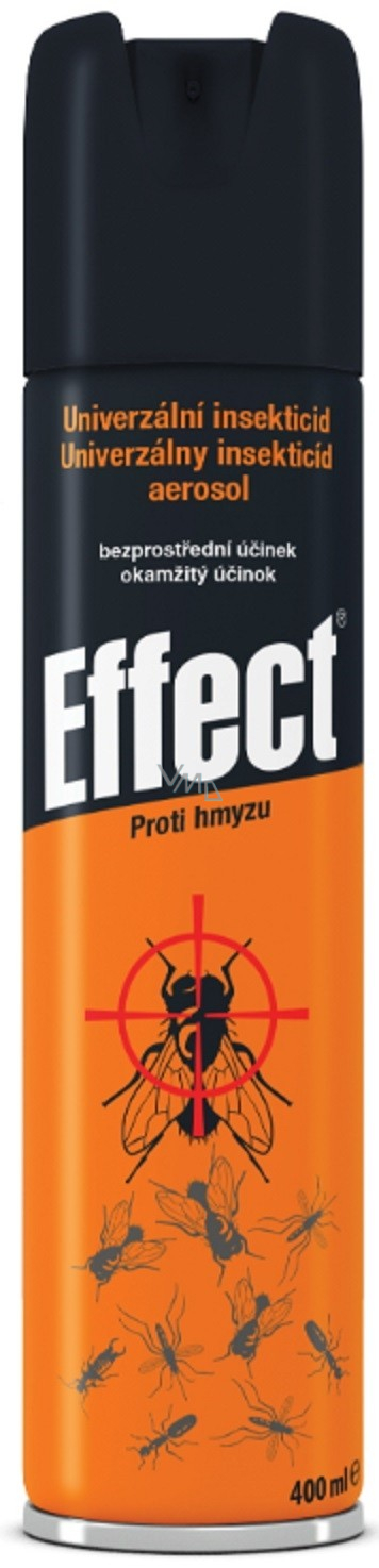 Aerosol Effect ist ein Kontaktinsektizid mit sofortiger Wirkung, das zur Bekämpfung von Fliegen und Mücken bestimmt ist, wirkt aber auch gegen Silberfische, Flöhe, Spinnen, Schaben, Ameisen und Wespen sowie andere fliegende und kriechende Insekten. Das Insektizid tötet Insekten und erfrischt den Raum mit einem angenehmen Duft.